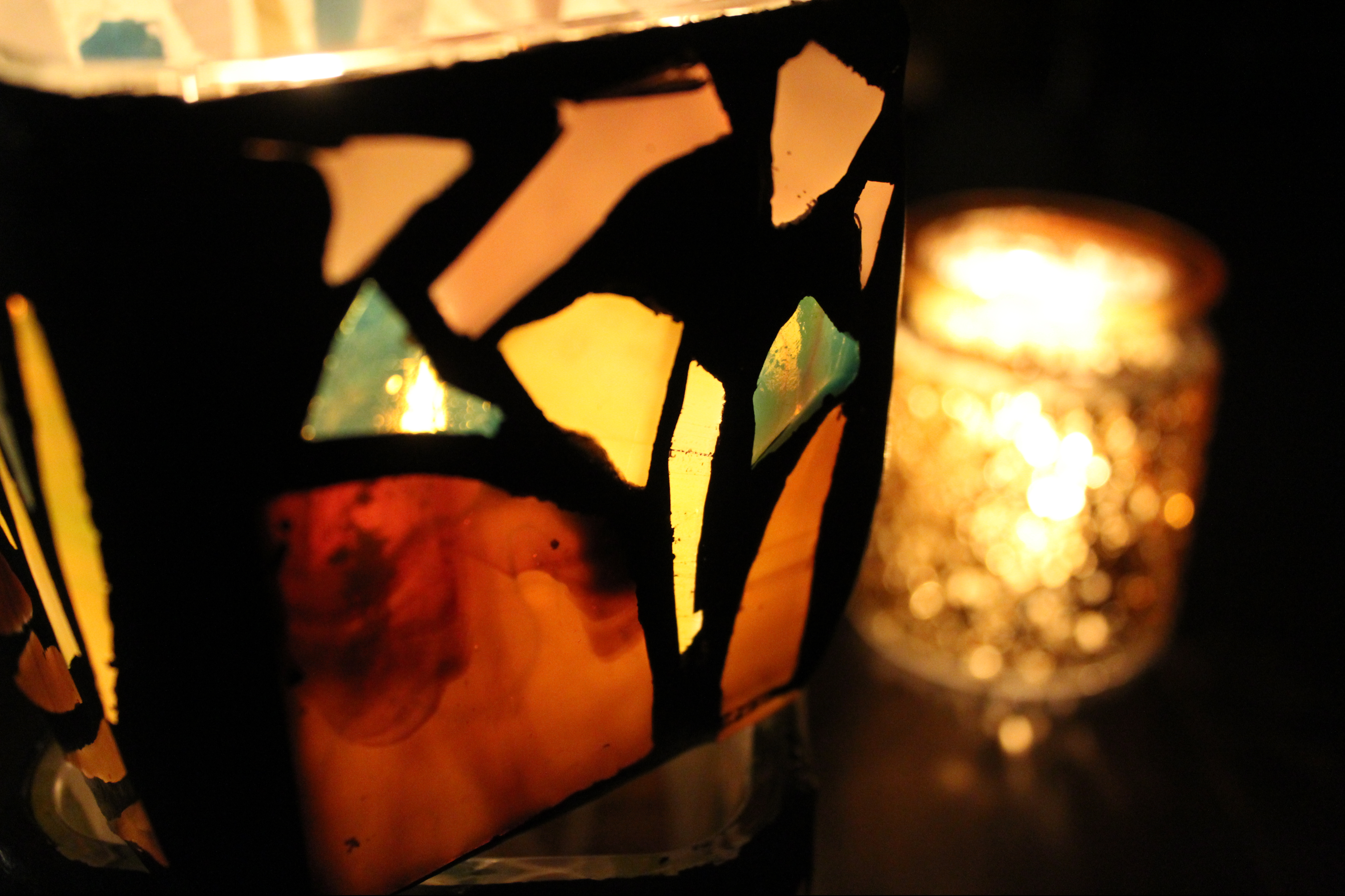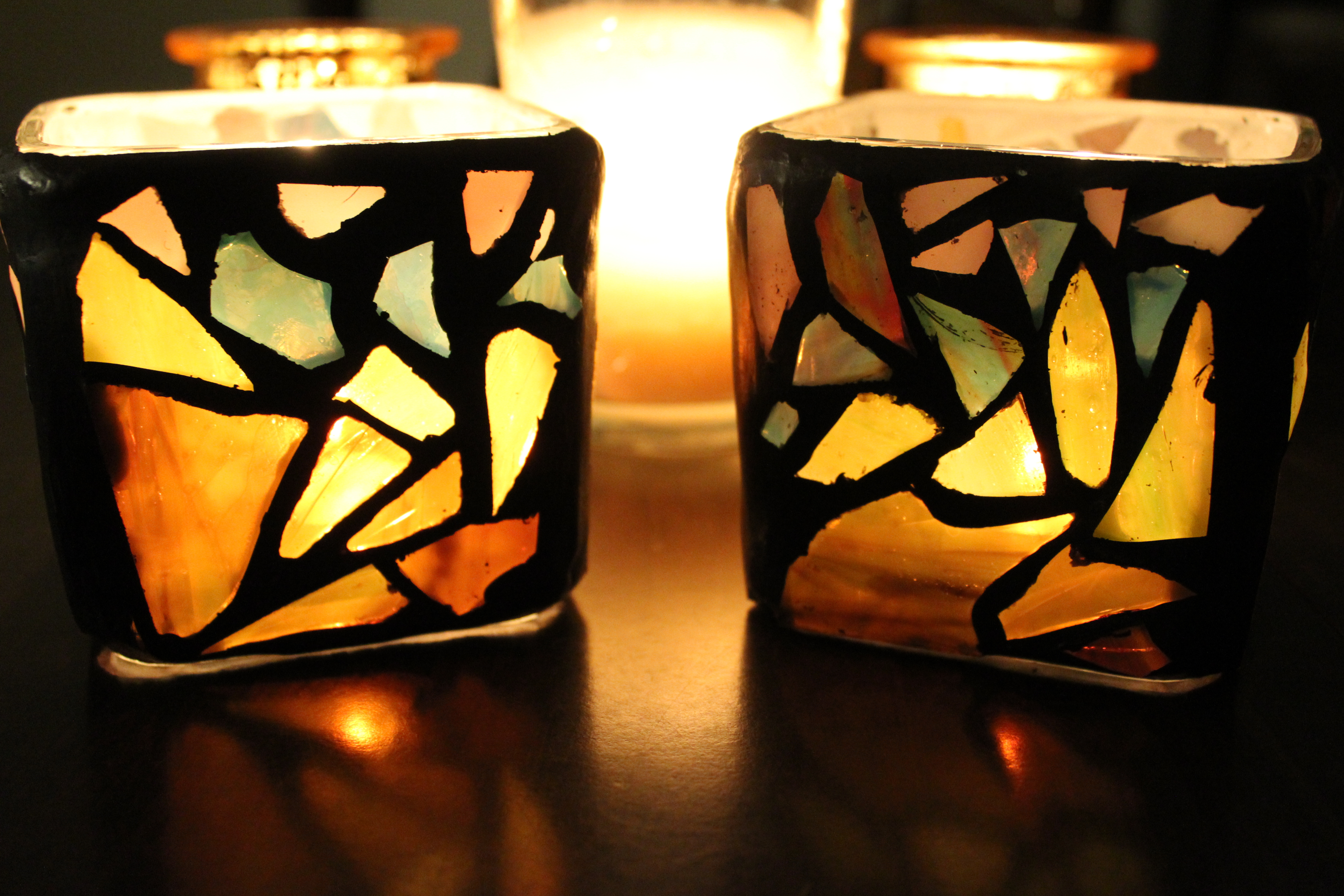 These candleholders were handmade using stained glass from the First Presbyterian Church of Youngwood which opened its doors in 1910. Each candleholder is uniquely designed and uses a collection of hand-selected glass to create its originality. The dimensions of this product are approximatley Length: 3.7 inch x Height: 3.7 inch x Width: 3.7 inch This product is intended for decorative purposes only. This item should not be used for food. This is not microwave, oven, or dishwasher safe. Do not soak in water for an extended period of time.